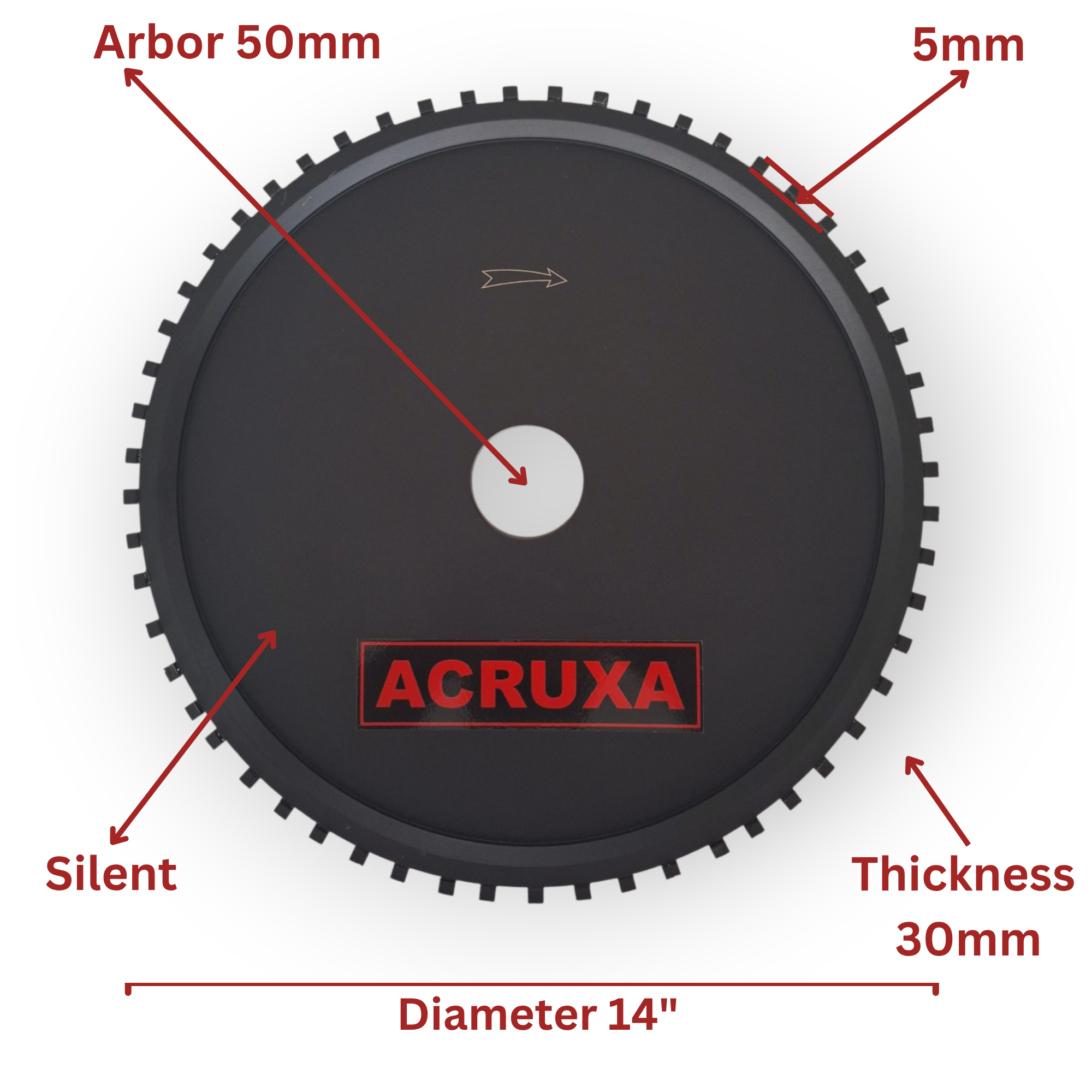 Radius Milling Wheel, used to make designs on Quartzite, Granite, Quartz. Diameter 14″. Thickness 1-1/4″. Bore 60/50mm. Vacuum welded. Made of Diamond Segments.